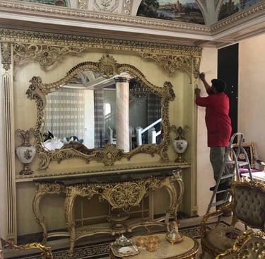 Le miroir devient une pièce maîtresse quand il est encadré sur mesure. Bois sculpté, dorures, arabesques ou lignes droites : l’encadrement est pensé comme une extension de votre univers. Accroché au-dessus d’une cheminée, dans une salle de bain ou une entrée, il allie utilité et esthétique.